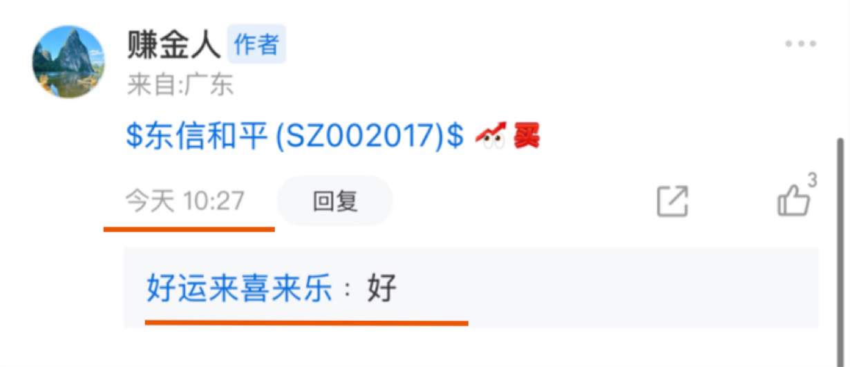 $东信和平(SZ002017)$ 恭喜这位幸运宝子拿下涨停!不过今天的粉丝确实挺让我失望的吃肉了点赞评论比平时还少了…没动力这条点赞评论不超过100的话就先暂停一段时间实时分享吧