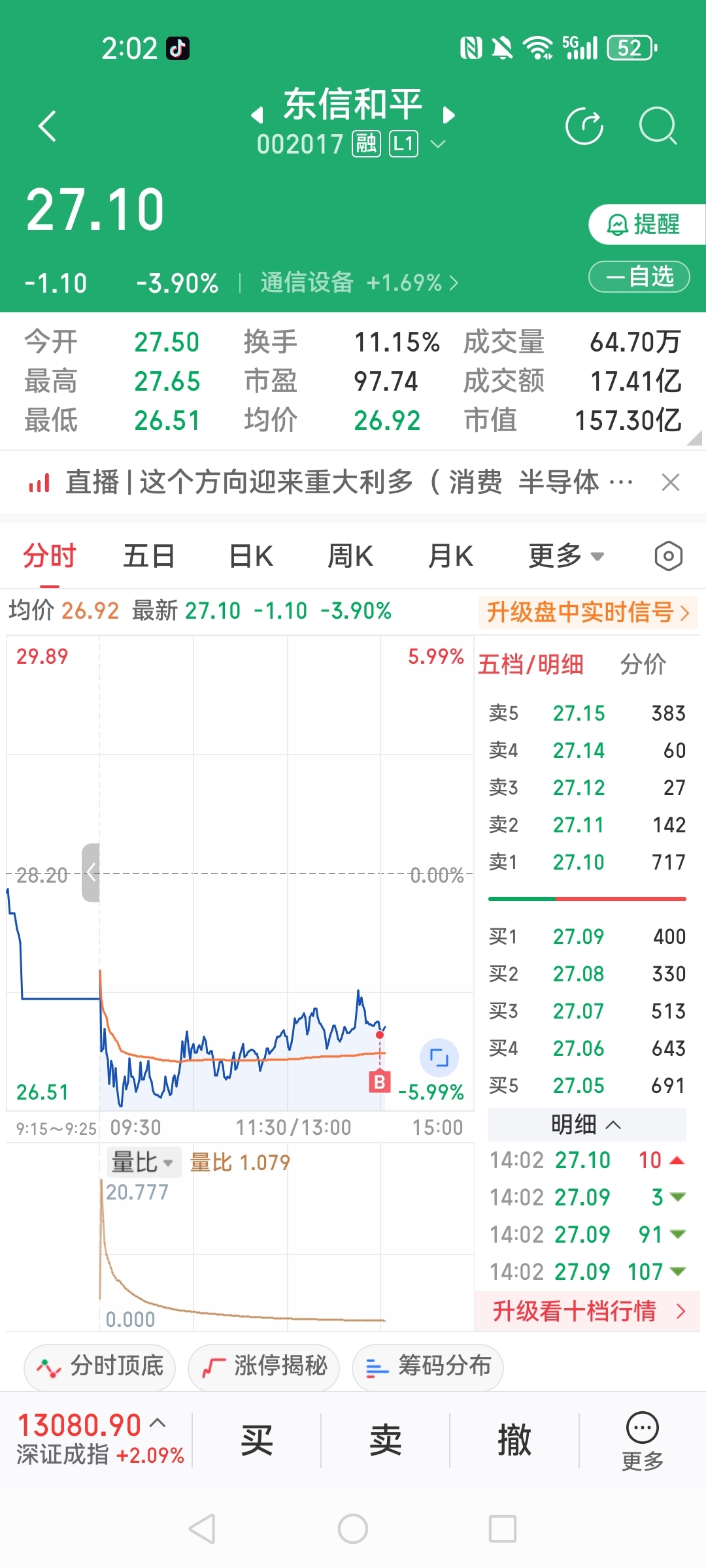 $东信和平(SZ002017)$ 我进了一点,现在可以跌了