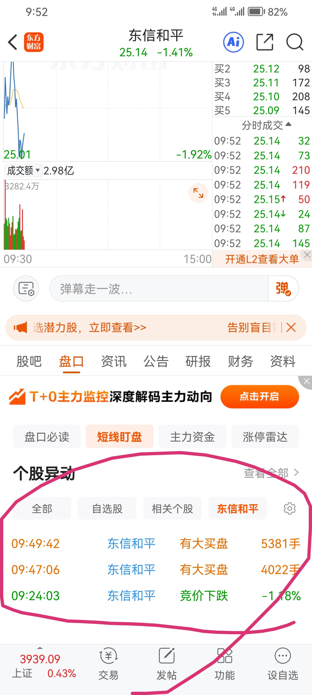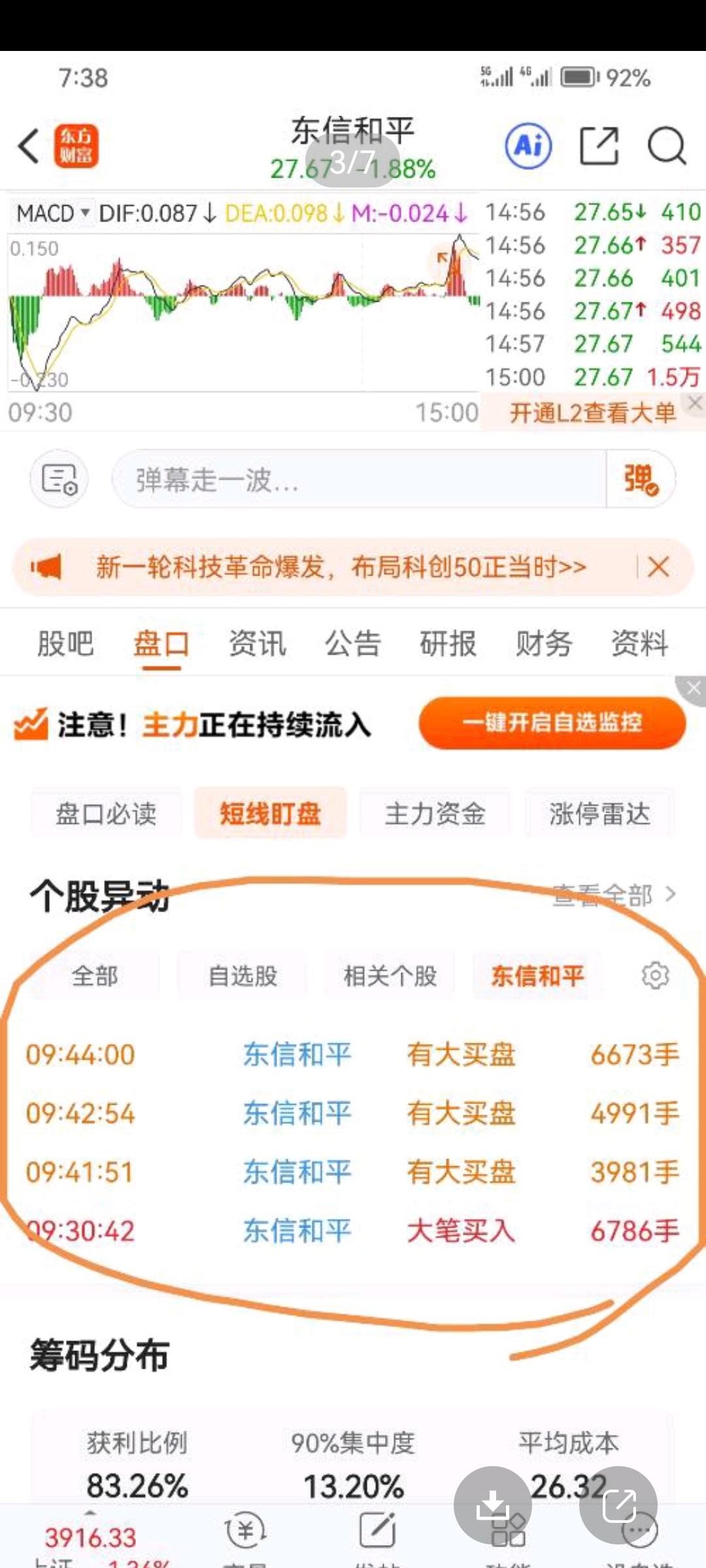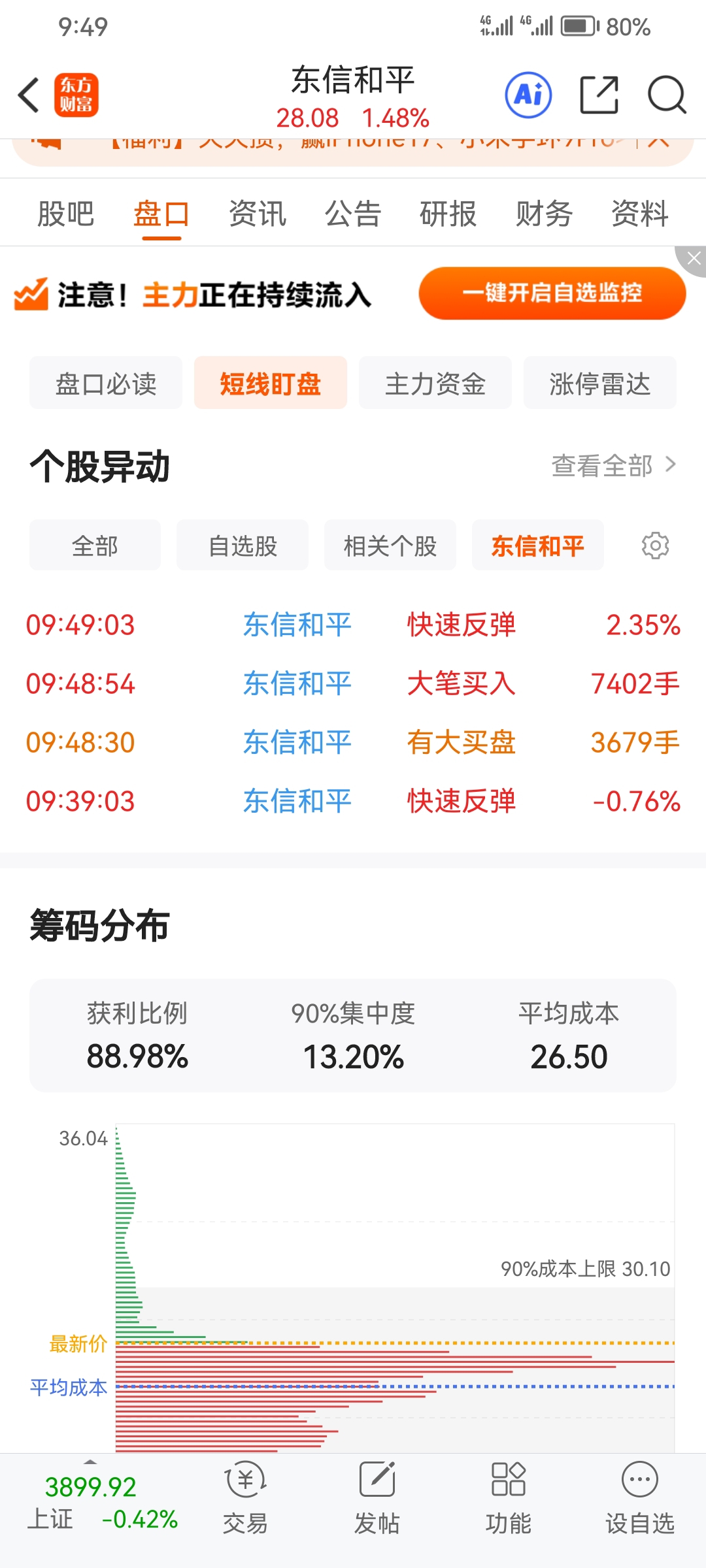 $东信和平(SZ002017)$ 东信主力够阴又够狠,利用自己高度控盘的优势,连续三天竞价不是低开就是拉高再掷盘,几乎在全天最低位连吃数单大单,然后羊详而去,让大家多空搏杀,摸不着头脑。东信潜在的题材是无容置疑的,主力这样做可能要下一盘大棋,懂得都懂、心水清的人唯有耐心等待…。