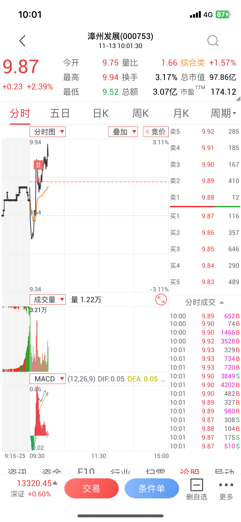 拿了4天阴跌两天,想割了换夏工犹豫下涨起来,然后买点漳州发展,明天能不能赚无所谓,起码能看到紫色买单