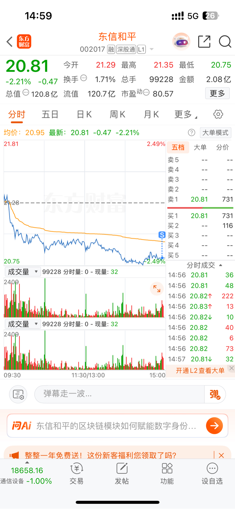 $东信和平(SZ002017)$ 清仓认输,满仓亏了10个点
