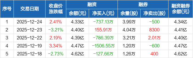 东信和平:融资净偿还737.13万元,融资余额4.33亿元(12-24)