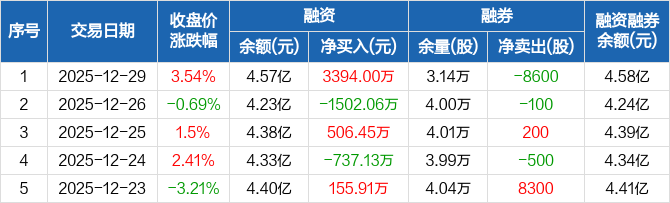 东信和平:融资净买入3394万元,融资余额4.57亿元(12-29)