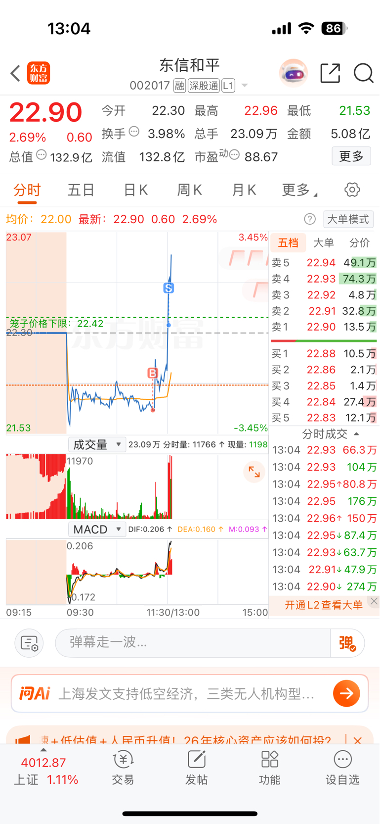 $东信和平(SZ002017)$ 卖飞了