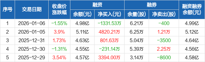东信和平:融资净偿还1331.53万元,融资余额4.98亿元(01-06)