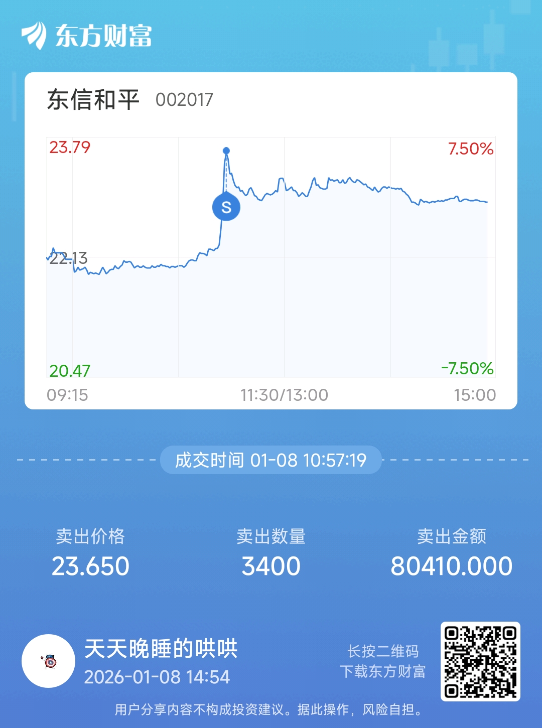 温馨提示: 1.根据《证券法》规定,禁止编造、传播虚假信息或者误导性信息,扰乱证券市场;2.用户在本社区发表的所有资料、言论等仅代表个人观点,与本网站立场无关,不对您构成任何投资建议。用户应基于自己的独立判断,自行决定证券投资并承担相应风险。《东方财富社区管理规定》