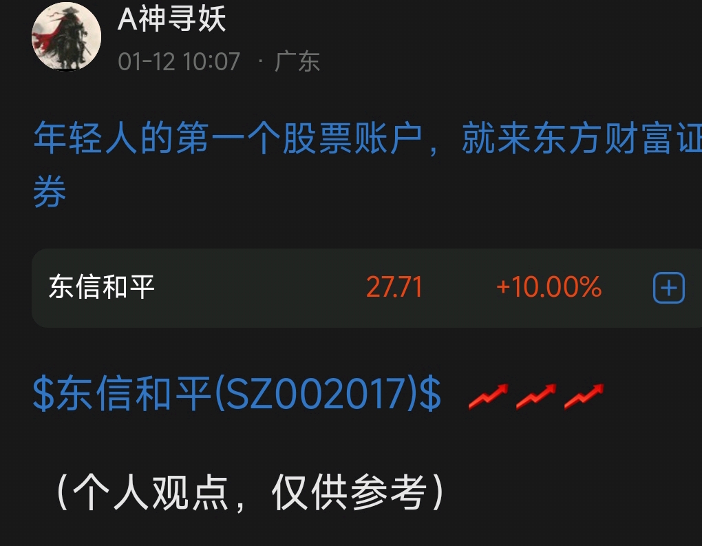 $东信和平(SZ002017)$ 跟上的朋友们吃到肉了吧