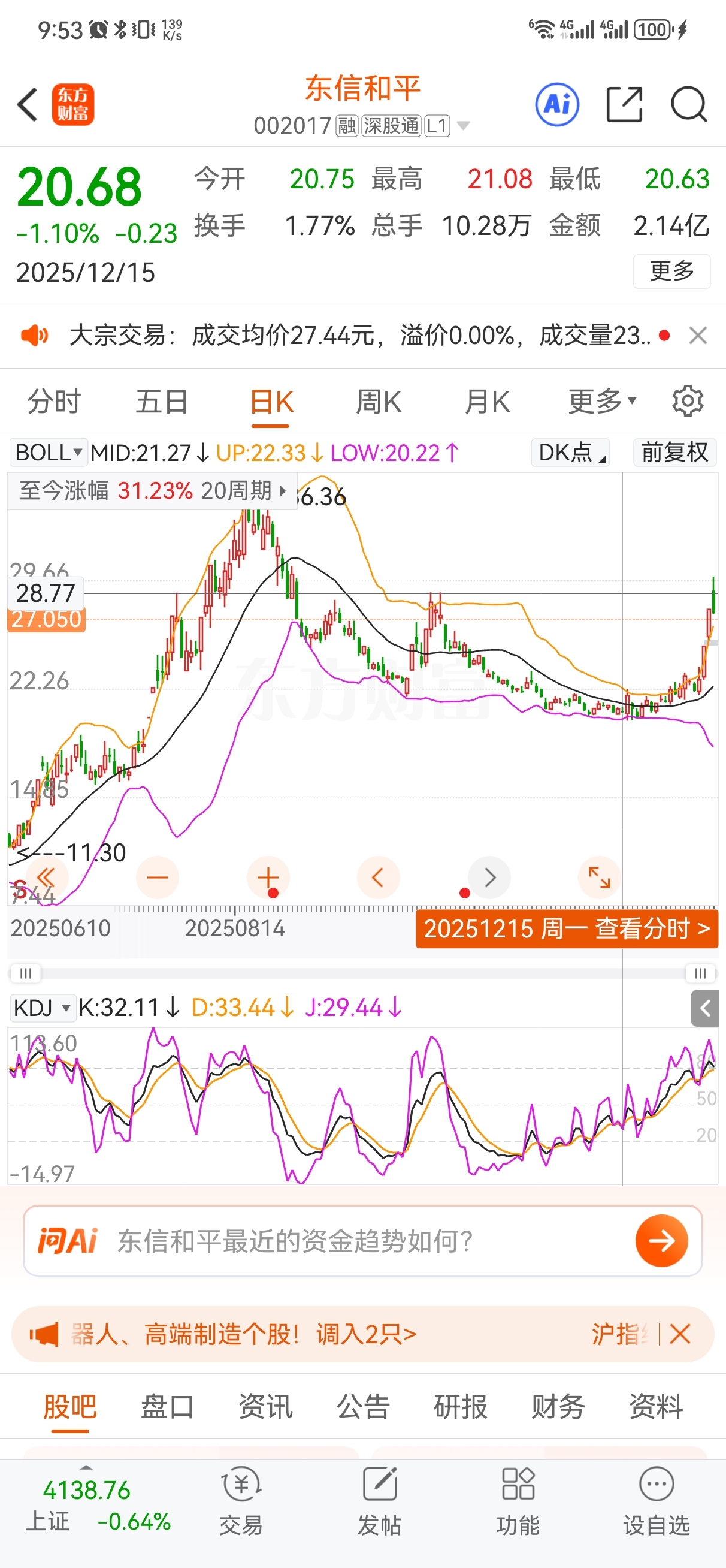 $东信和平(SZ002017)$ 28块8左右是大压力位,目前看是震荡洗盘然后借行情突破后一片大好前景