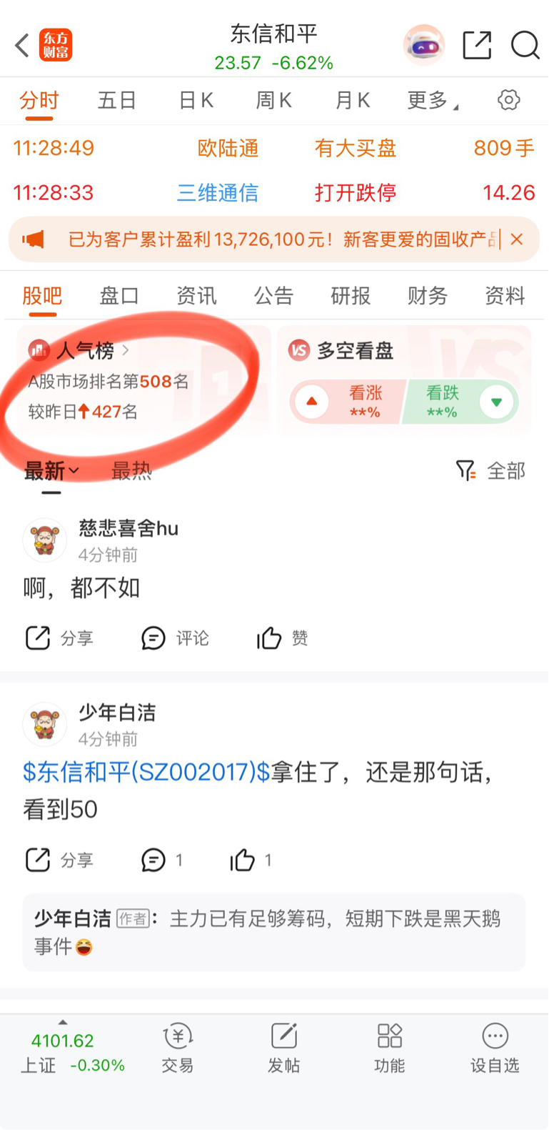 温馨提示: 1.根据《证券法》规定,禁止编造、传播虚假信息或者误导性信息,扰乱证券市场;2.用户在本社区发表的所有资料、言论等仅代表个人观点,与本网站立场无关,不对您构成任何投资建议。用户应基于自己的独立判断,自行决定证券投资并承担相应风险。《东方财富社区管理规定》