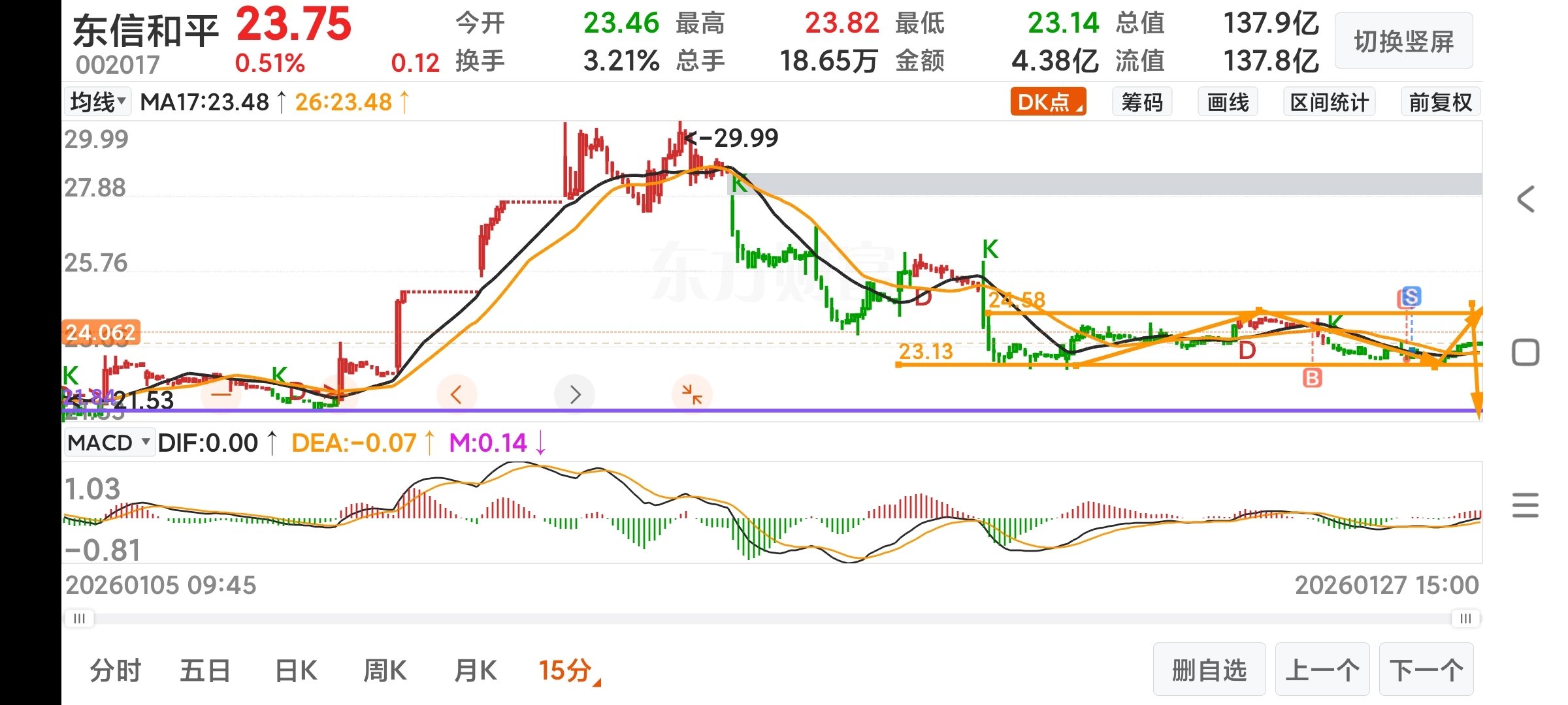 关注一下23.55附近这波能不能站上或者有效突破!假如这里过不去就有点风险了!可