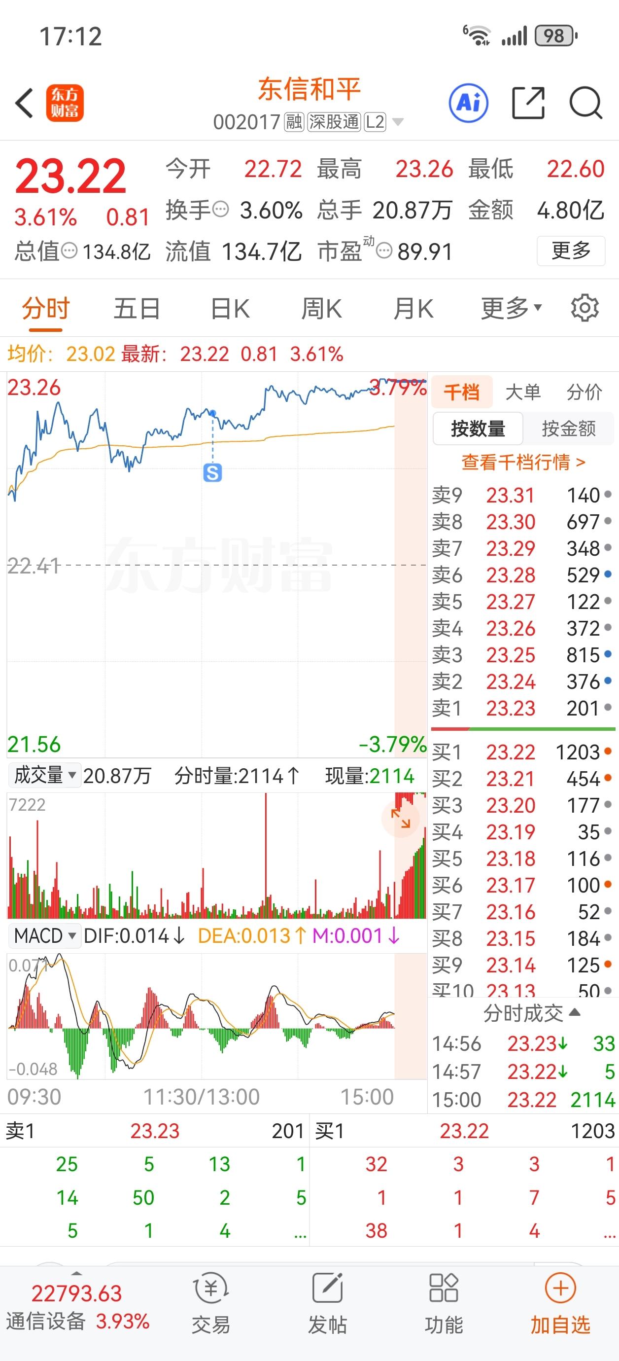$东信和平(SZ002017)$ 已卖飞,各位好运!要补其他仓!