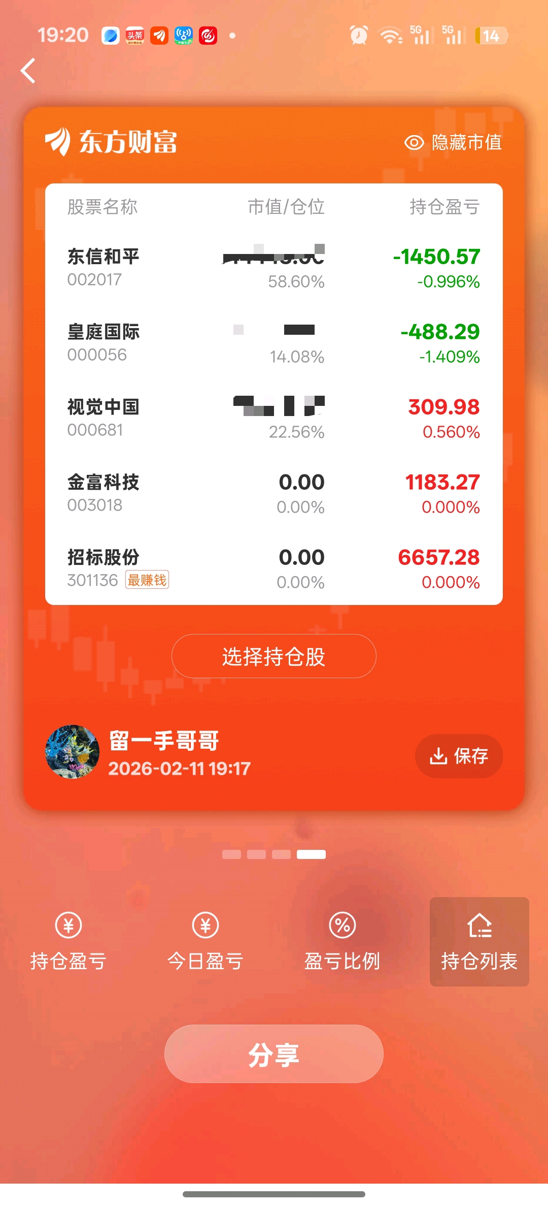 $东信和平(SZ002017)$ 今天清了两支股,明天看你们三个能给我带来多少好运,