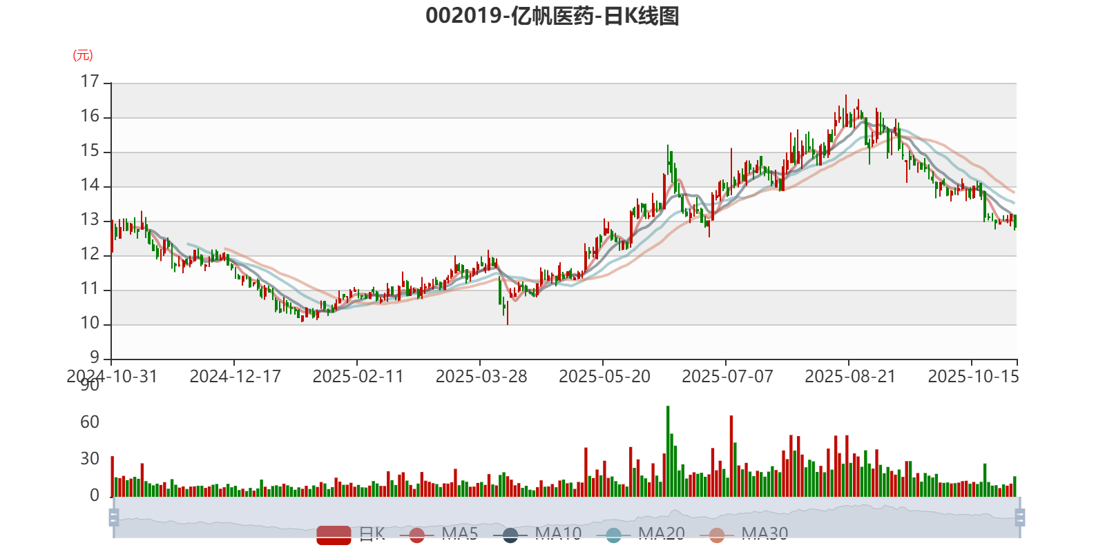 以10月30日收盘价计算,亿帆医药目前市盈率(TTM)约为38.28倍,市净率(LF)约1.77倍,市销率(TTM)约2.98倍。