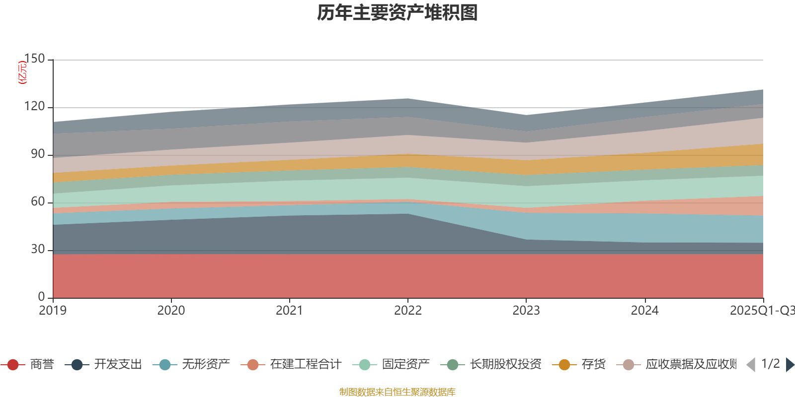 资产重大变化方面,截至2025年三季度末,公司在建工程合计较上年末增加52.73%,占公司总资产比重上升2.84个百分点;无形资产较上年末减少5.94%,占公司总资产比重下降1.76个百分点;存货较上年末增加27.06%,占公司总资产比重上升1.64个百分点;商誉较上年末没有变化,占公司总资产比重下降1.39个百分点。