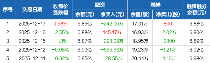 亿帆医药:融资净偿还242.06万元,融资余额6.86亿元(12-17)