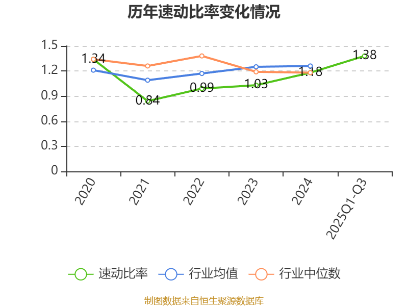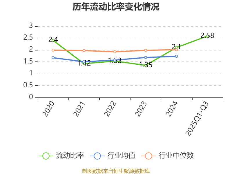 2025年前三季度,公司流动比率为2.58,速动比率为1.38。