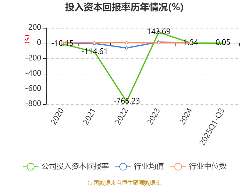 盈利能力方面, 2025年前三季度公司加权平均净资产收益率为0.2%,同比下降2.83个百分点。公司2025年前三季度投入资本回报率为0.05%,较上年同期下降1.92个百分点。