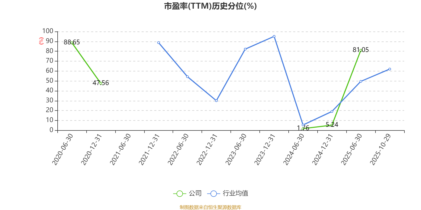 市盈率、市净率为负时,不显示当期分位数,会导致折线图中断。