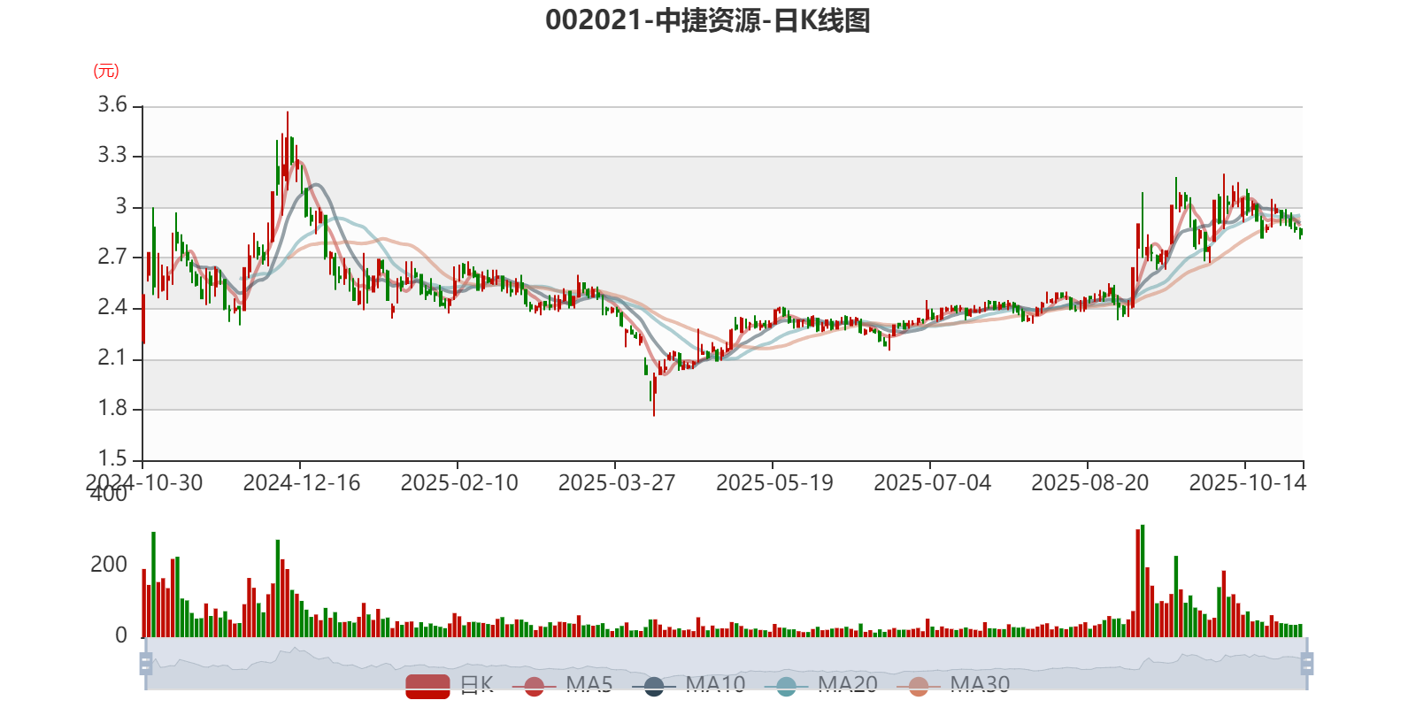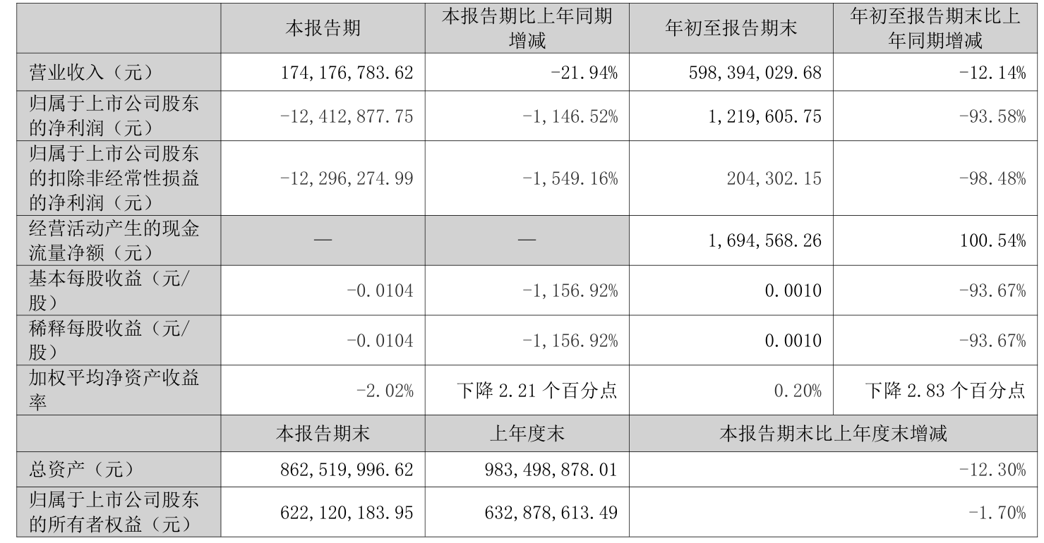 中证智能财讯中捷资源(002021)10月30日披露2025年第三季度报告。前三季度公司实现营业总收入5.98亿元,同比下降12.14%;归母净利润121.96万元,同比下降93.58%;扣非净利润20.43万元,同比下降98.48%;经营活动产生的现金流量净额为169.46万元,上年同期为-3.15亿元;报告期内,中捷资源基本每股收益为0.001元,加权平均净资产收益率为0.20%。