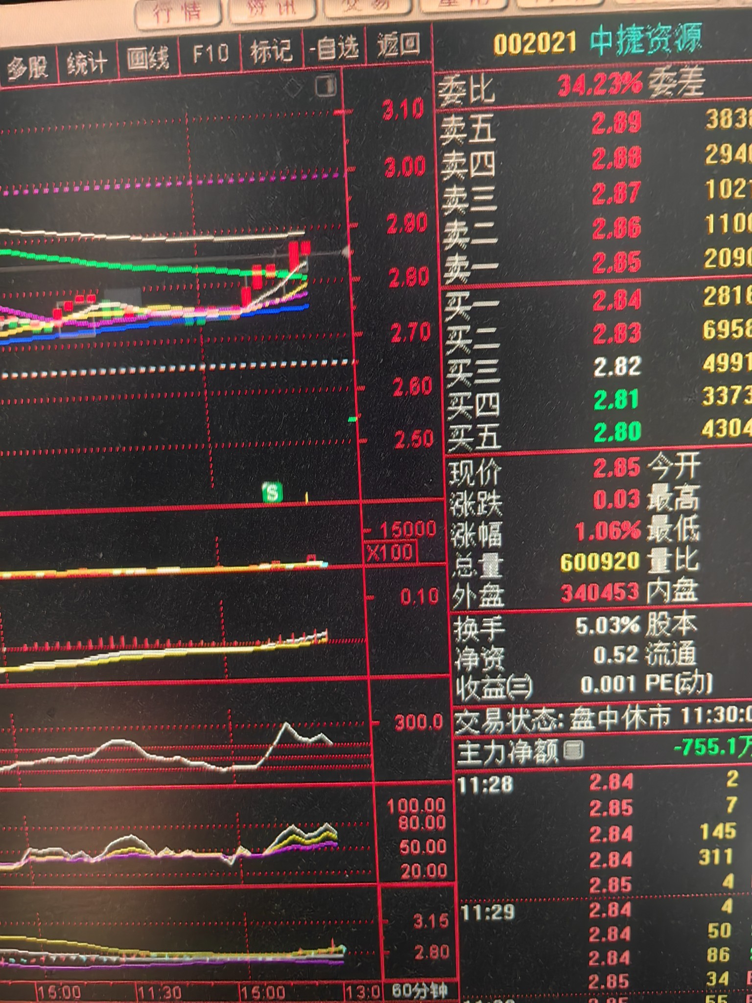 $中捷资源(SZ002021)$ 小时线和日线的主力资金