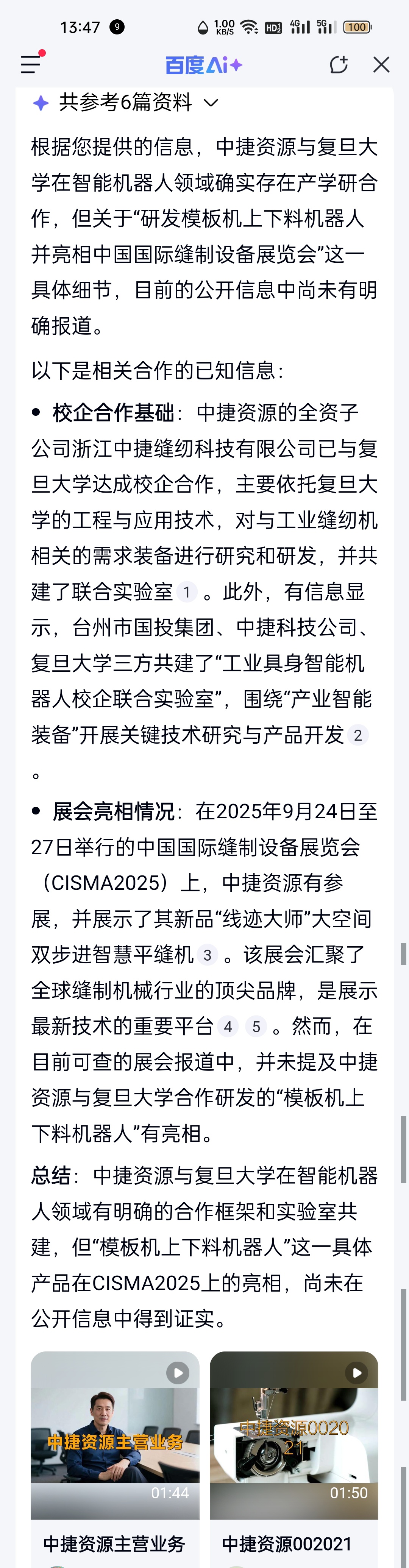中捷资源与复旦大学智能机器人合作进展乐观,股价常在地板上正开始放量~
