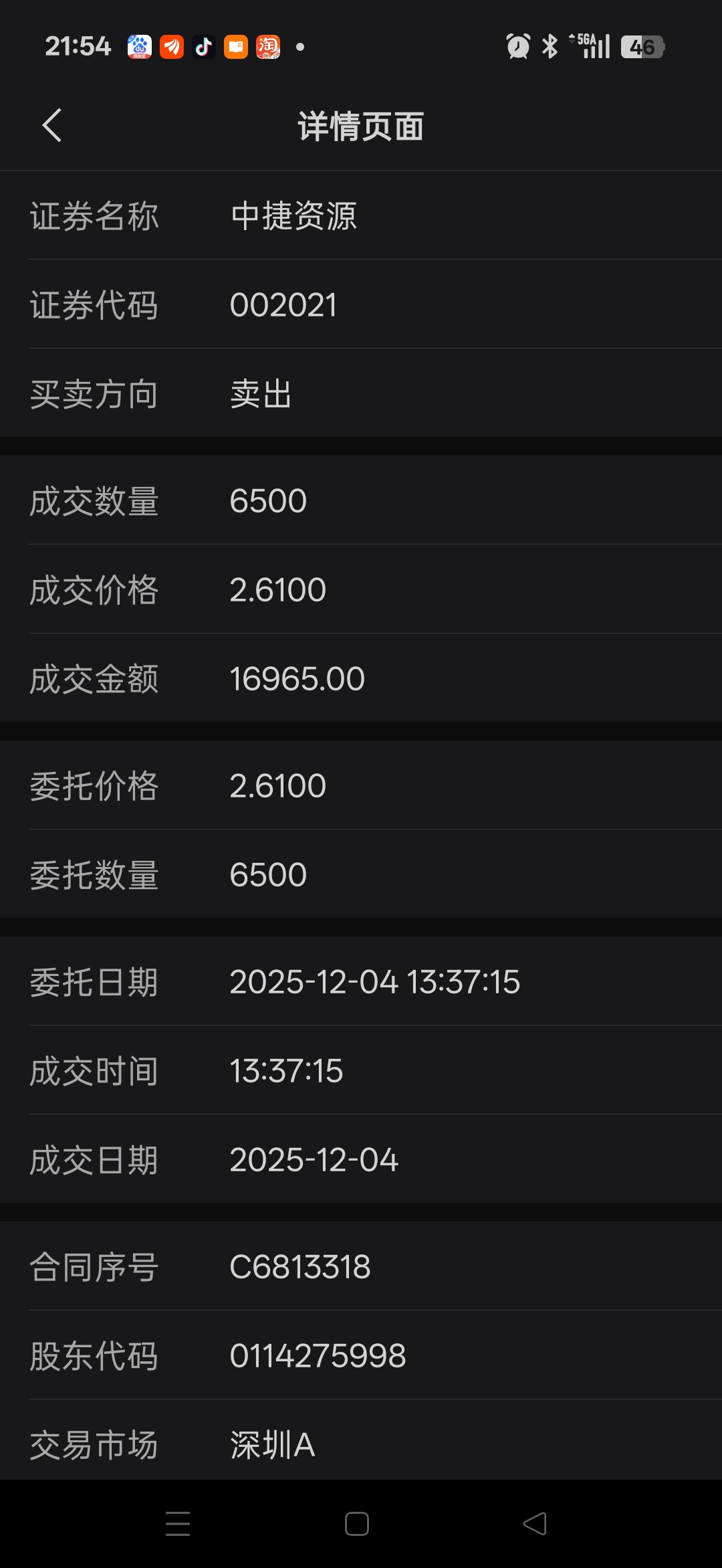 $中捷资源(SZ002021)$ 今天熬不下去,才卖了