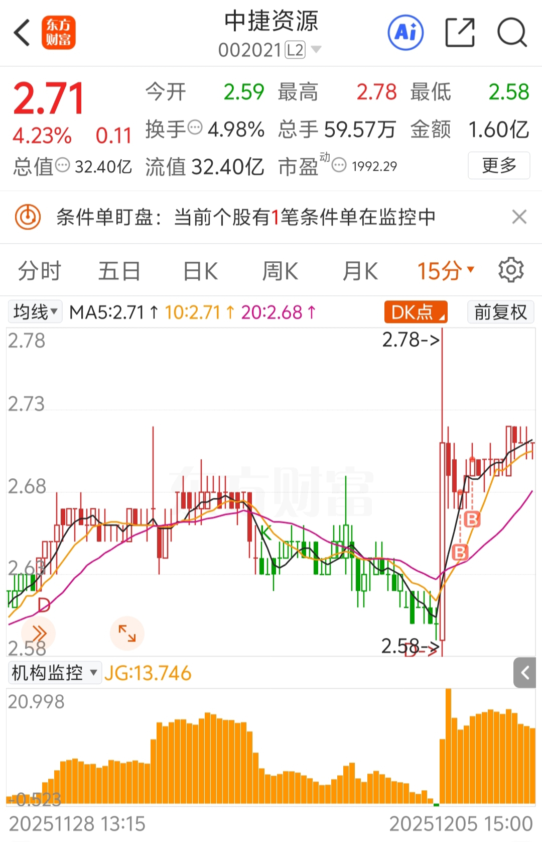 $中捷资源(SZ002021)$ 留两根长上影、弱势反弹遇抛压,但是两次没跌破2.58,不看空。