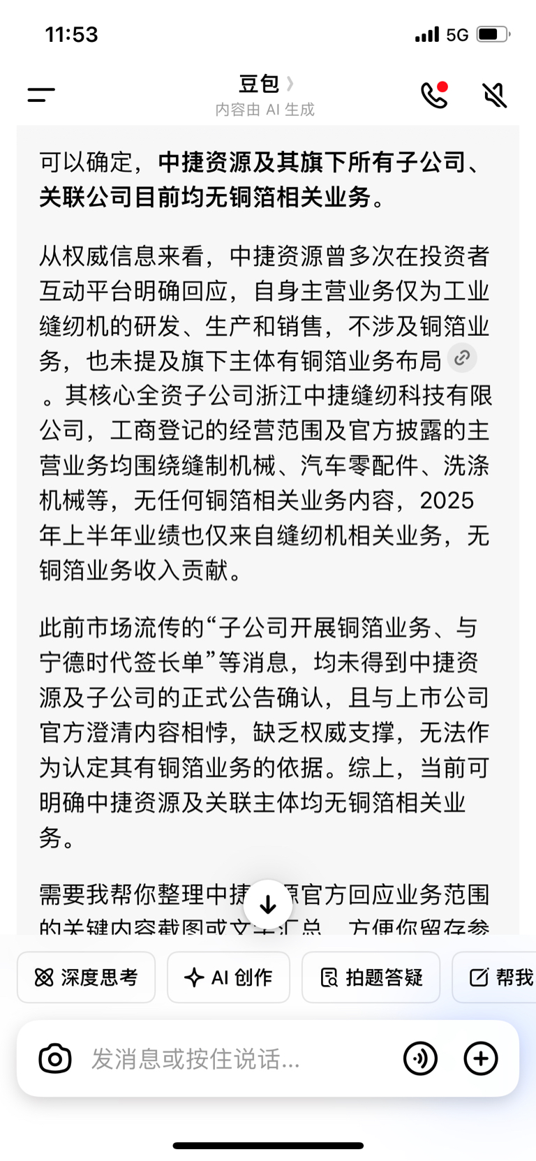 $中捷资源(SZ002021)$ 公司都回复了没有铜箔相关业务,还有人在这臆想 这就是一个做缝纫机的企业 目前没有任何其他业绩增长点 别上当 大概率还得跌