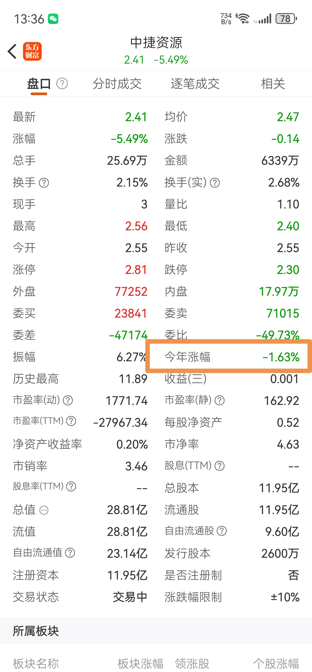大盘今年目前涨幅15%,中捷今年目前涨幅-1.5%。