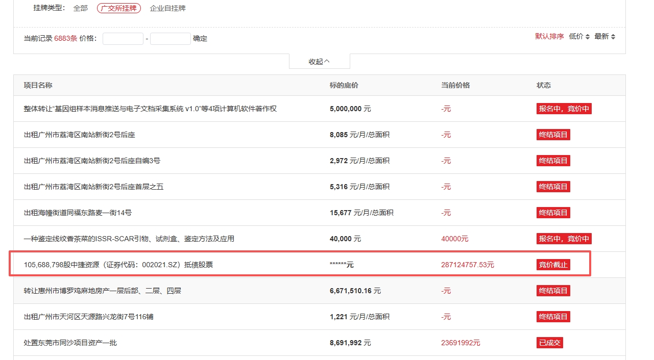 图片中明确显示该拍卖项目的状态为"竞价截止",而不是"流拍"或"无人报名"。在司法拍卖或资产处置中,"竞价截止"通常意味着有竞买人参与了竞拍,并且拍卖程序已经完成。这表明有竞买人出价,并且该价格被系统记录下来。如果无人出价,通常会显示"-元"或"无报价".