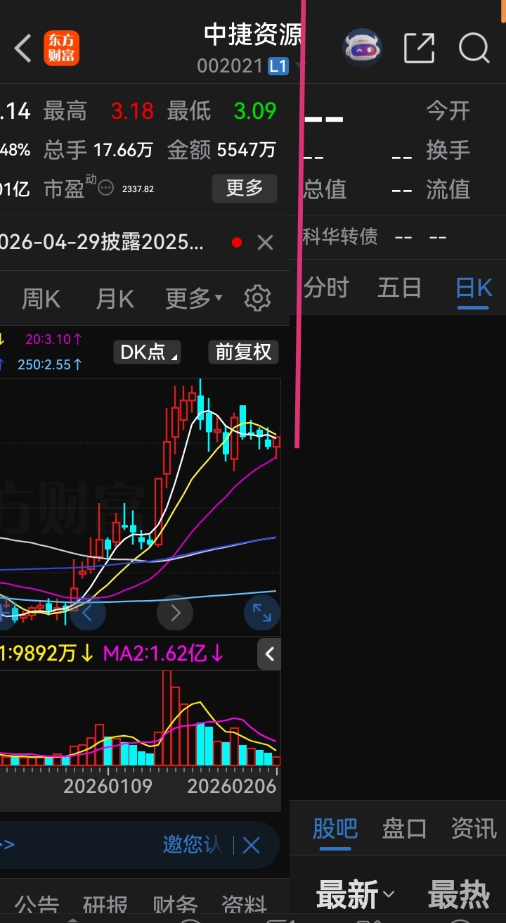 $中捷资源(SZ002021)$ 确实向上了,周线月线都很漂亮
