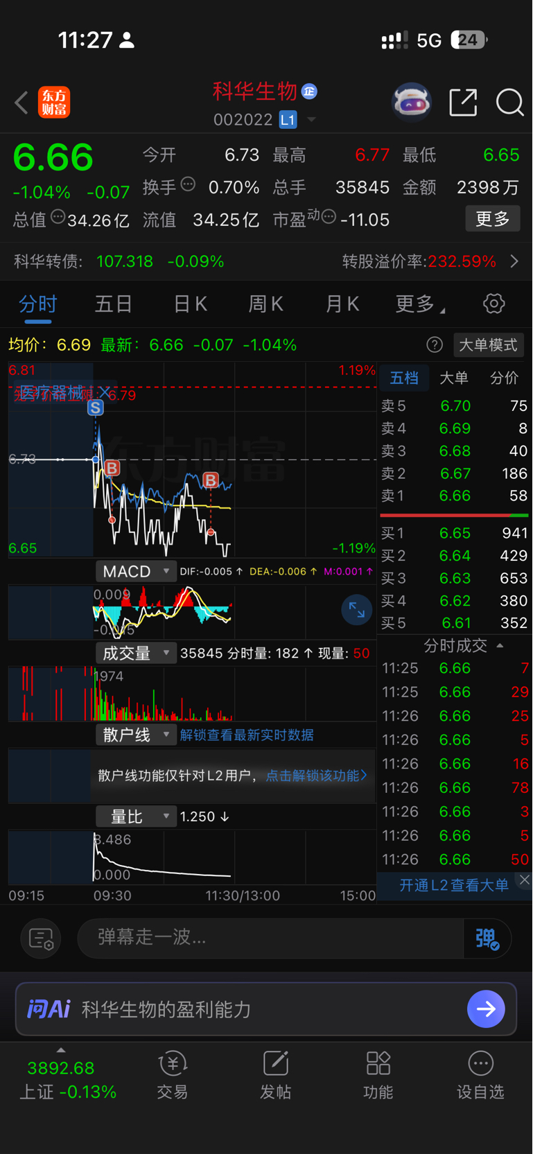 $科华生物(SZ002022)$ 今天先卖后买,又搞几百