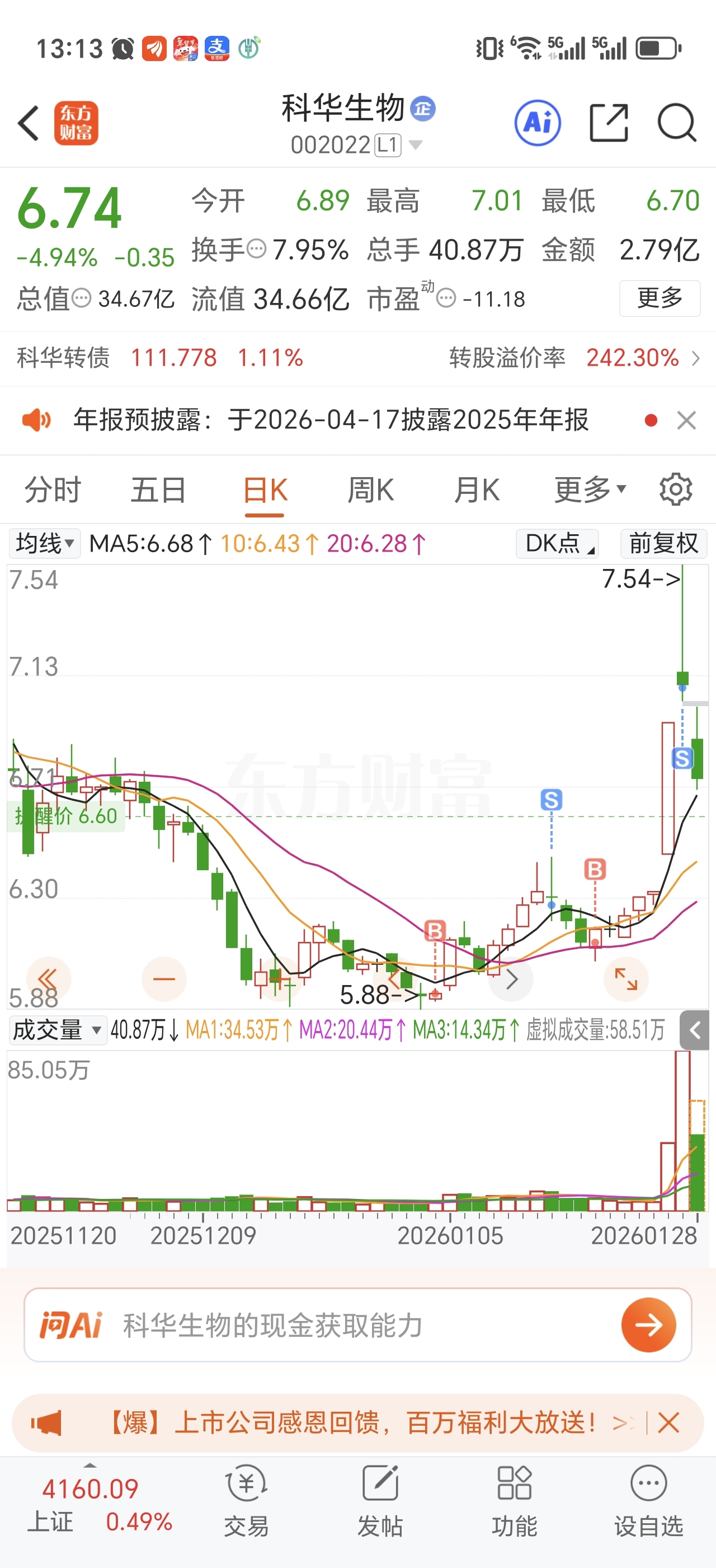 $科华生物(SZ002022)$ 好运再次降临