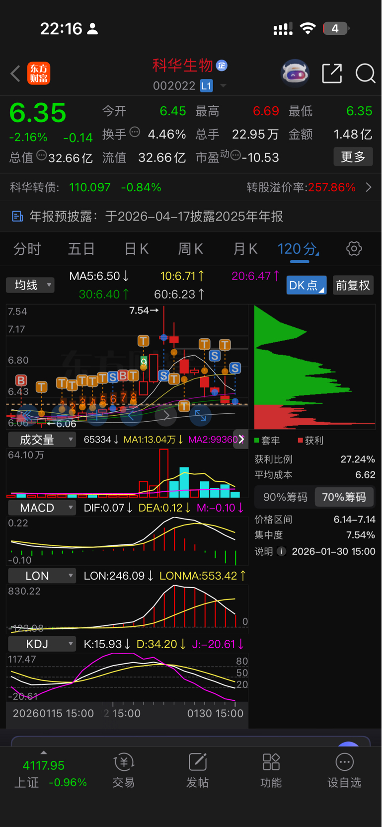$科华生物(SZ002022)$ 成本在120小时60周期下就还行,幸运7.31卖了