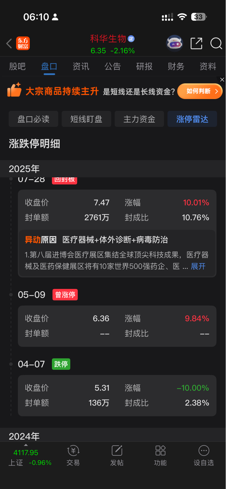 $科华生物(SZ002022)$ 2026年 6.16-7.5间横跳,基本不会到去年5.35跌停那天了,如果到6以下就是买点,上7减半仓防守
