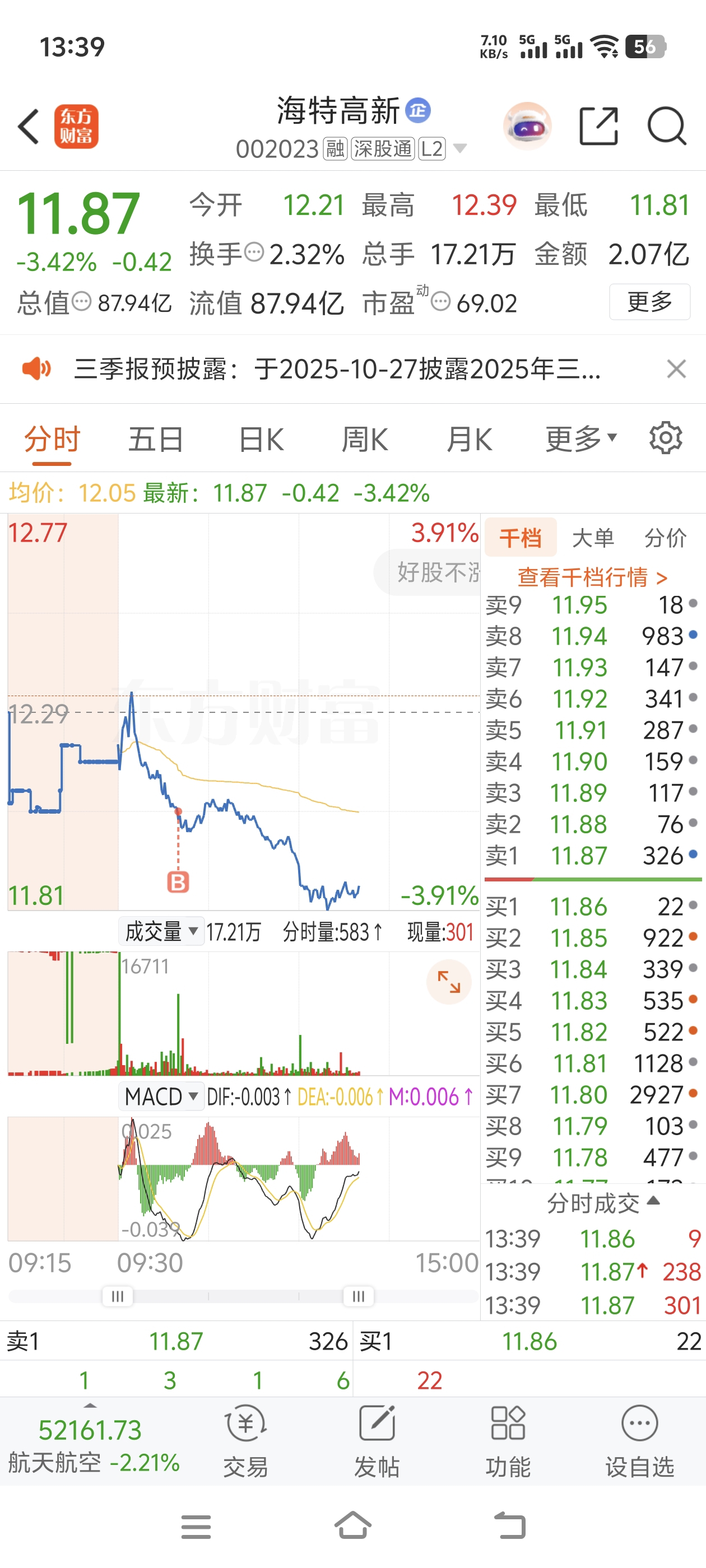 $海特高新(SZ002023)$ 全仓买早了