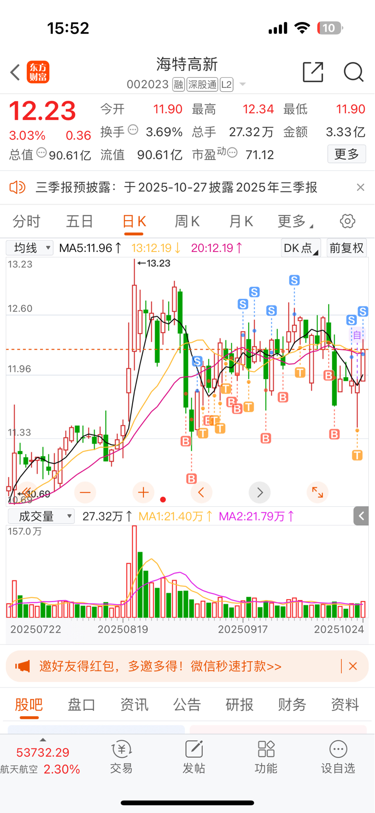 $海特高新(SZ002023)$ 玩了一个月海特挣的钱,一把全送给创新药了