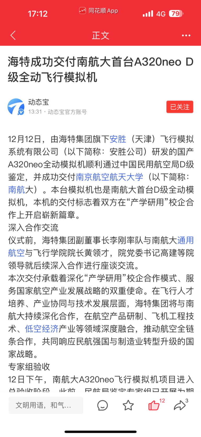 $海特高新(SZ002023)$ 国内顶尖南方航空大学
