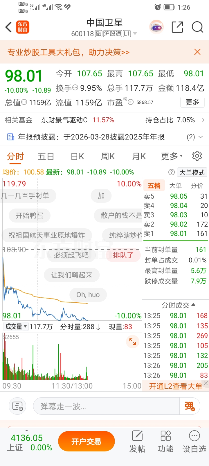 $海特高新(SZ002023)$ 中国卫星已经跌停