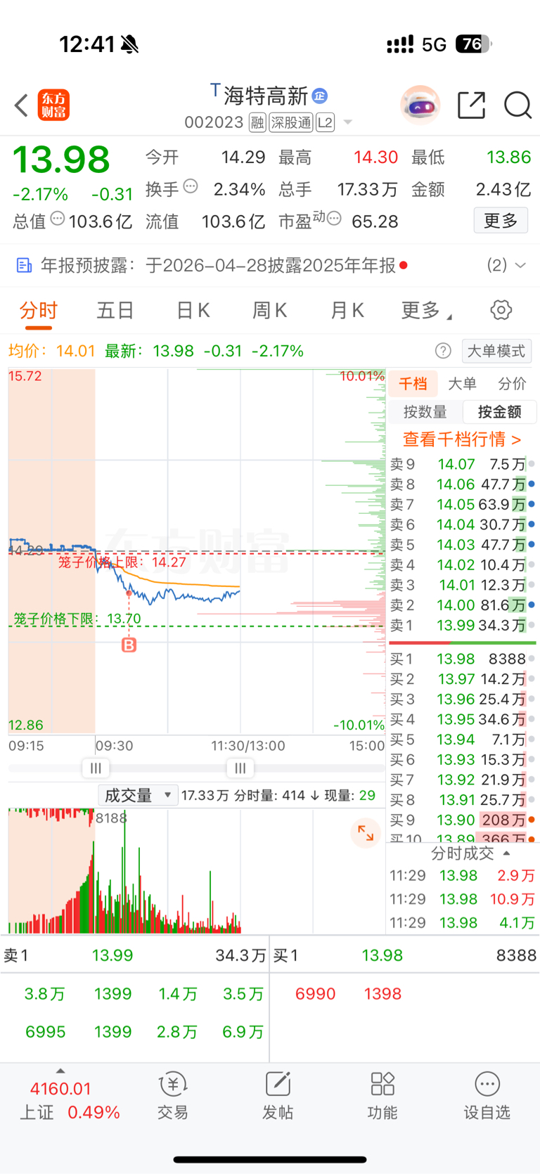 $海特高新(SZ002023)$ 外面做个短线,为了买你,还卖亏了另一个票,给你个差评,小海子。