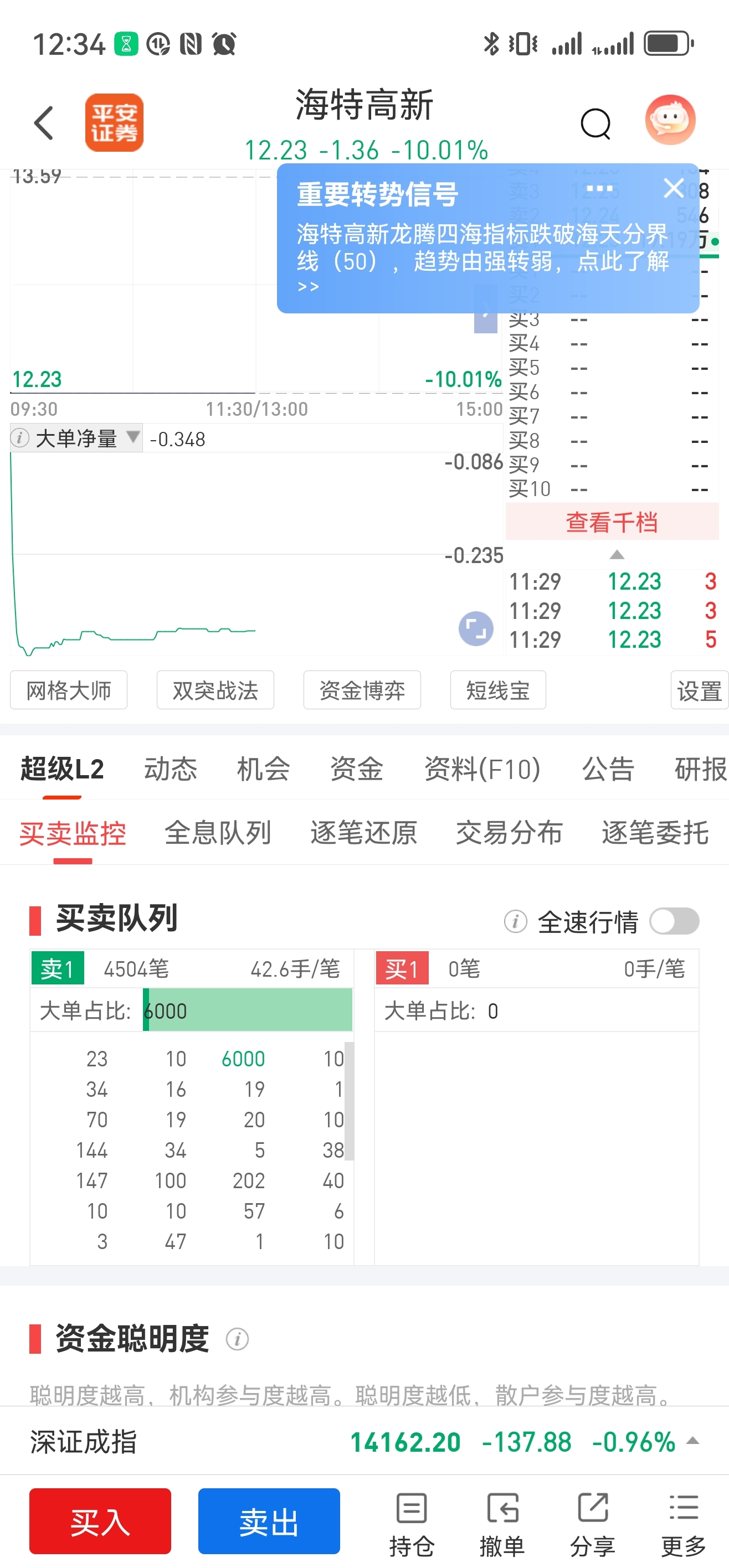$海特高新(SZ002023)$  都是散户在卖,大单都排在后面,下午有戏
