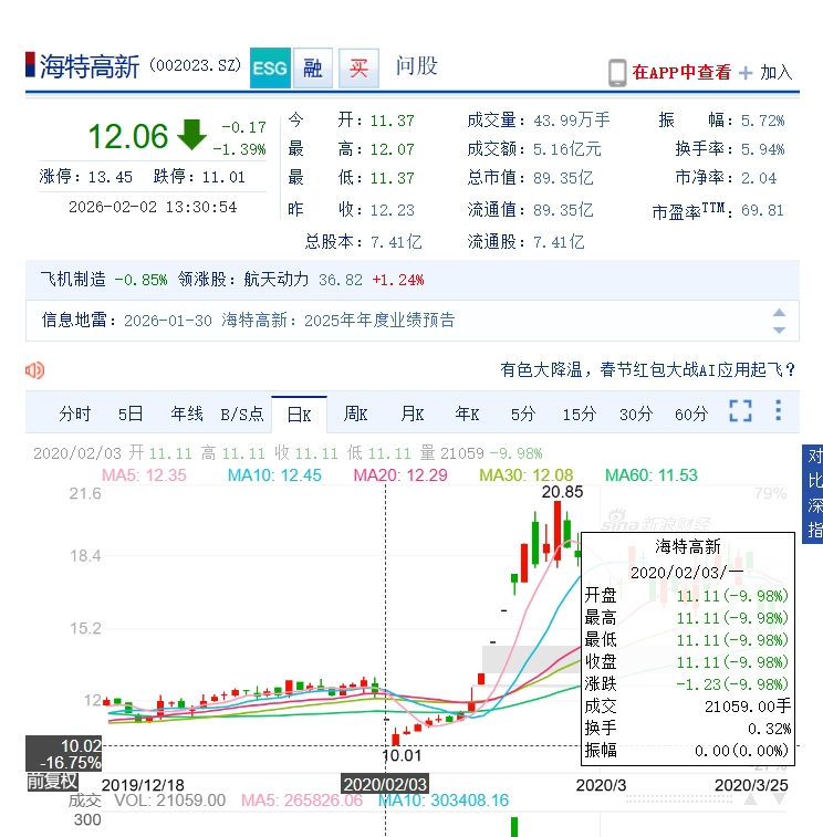 $海特高新(SZ002023)$ 这是要复制2020年2月3日跌停之后的走势吗?