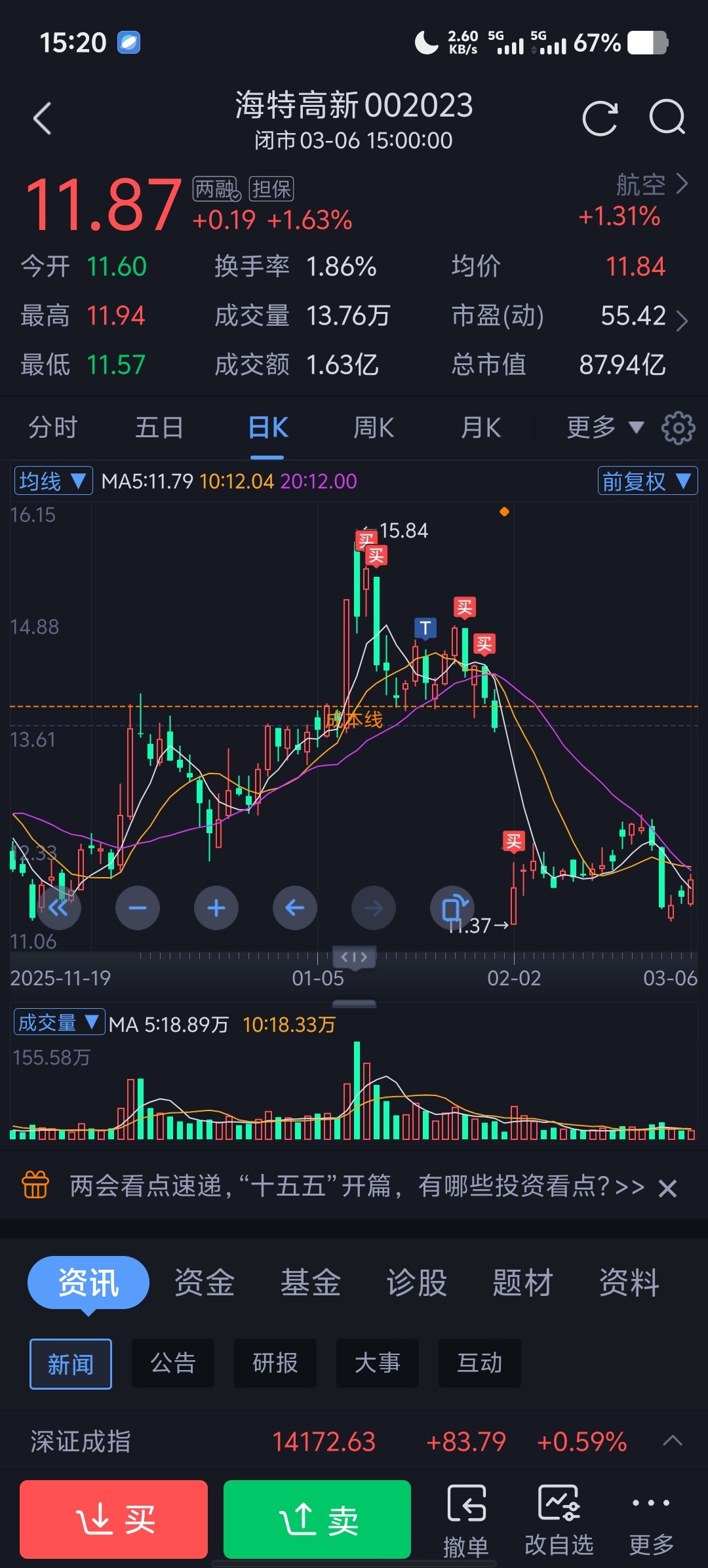 $海特高新(SZ002023)$ 兰兰你就这么走了我该怎么办啊