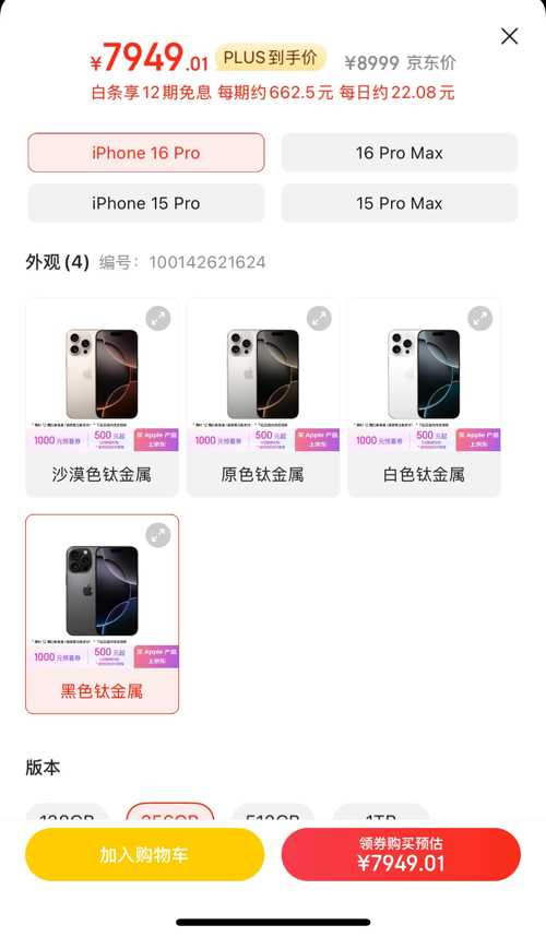 苏宁下单iphone16pro 256G,比京东便宜300,作为股东也支持一下了