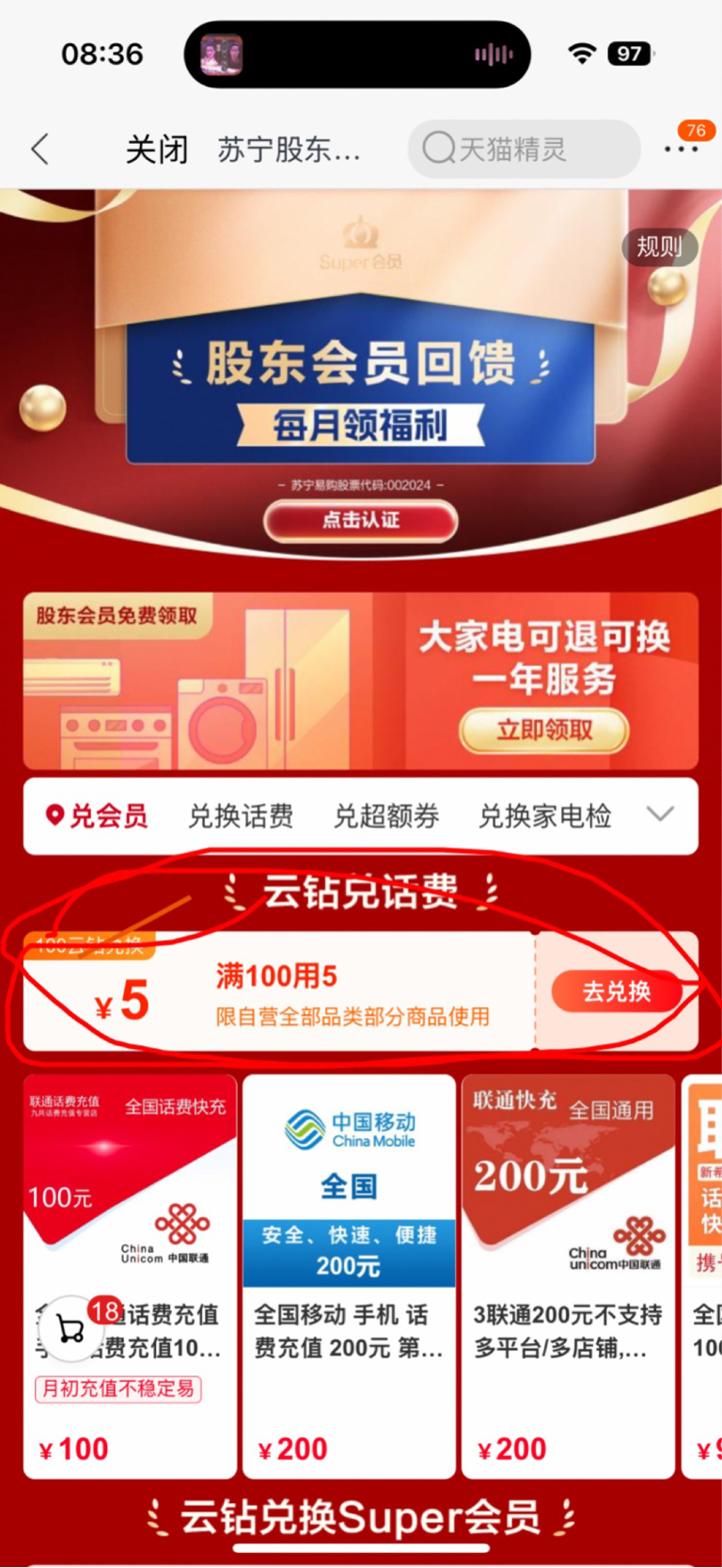 苏宁易购app股东认证,还领了不少劵。话费充100省5块,不错不错