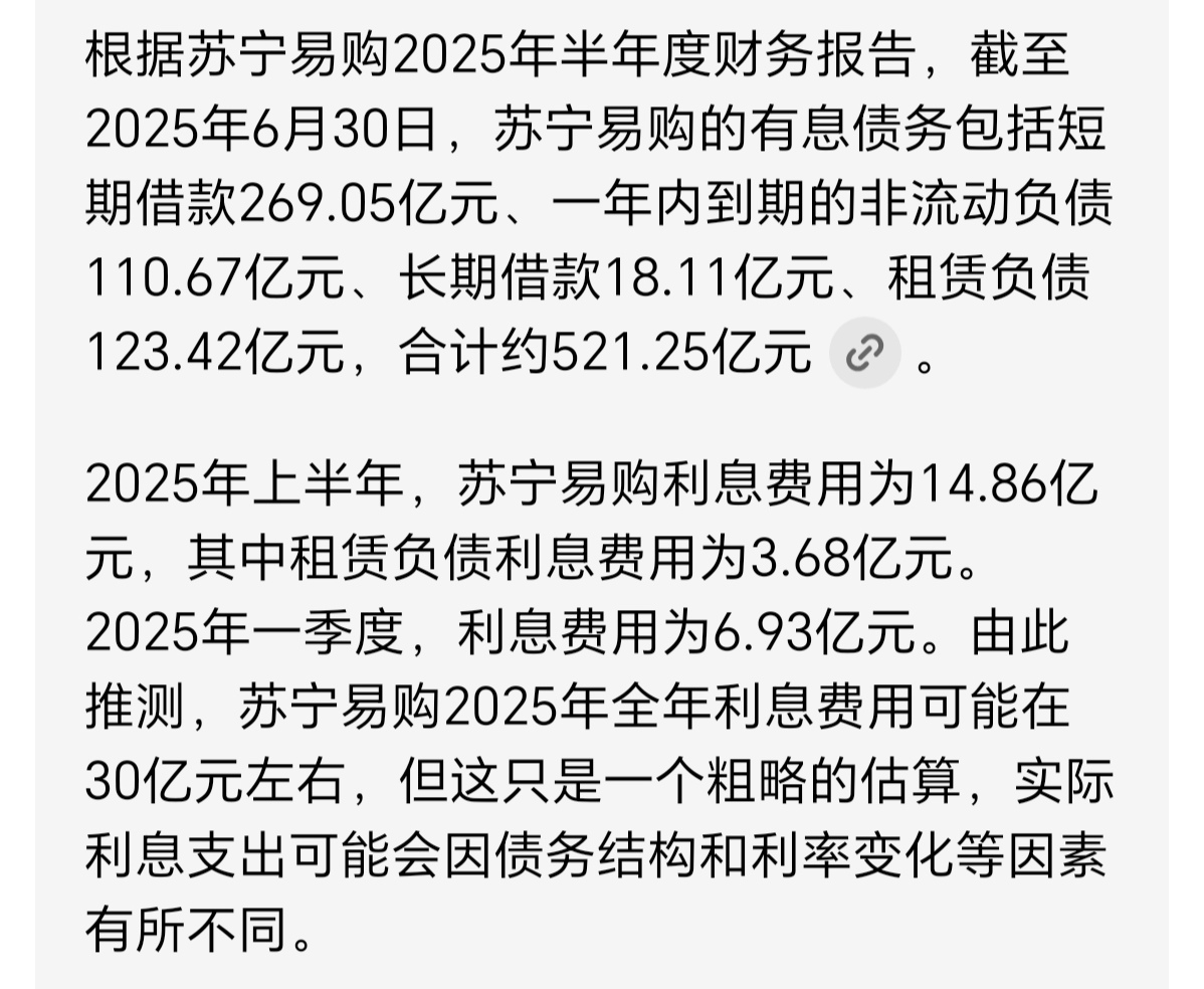 $ST易购(SZ002024)$ 这借的高利贷吗?500亿欠债一年要30亿利息!由此推断李松强这几年的利息都亏了三四亿!