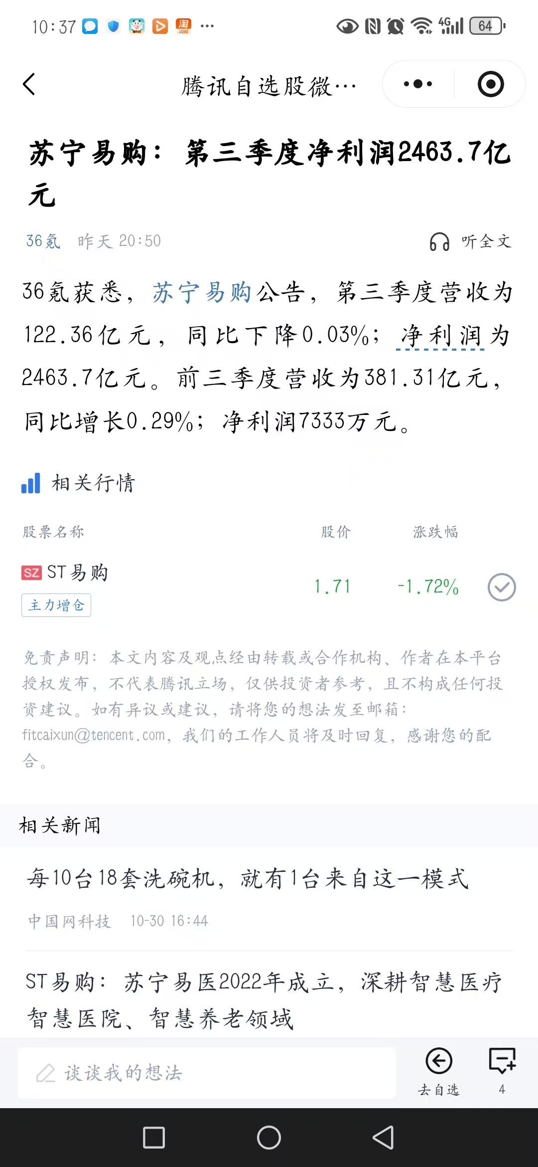 $ST易购(SZ002024)$ 一个季度盈利2000多亿的时候股价才能起飞吧。。。