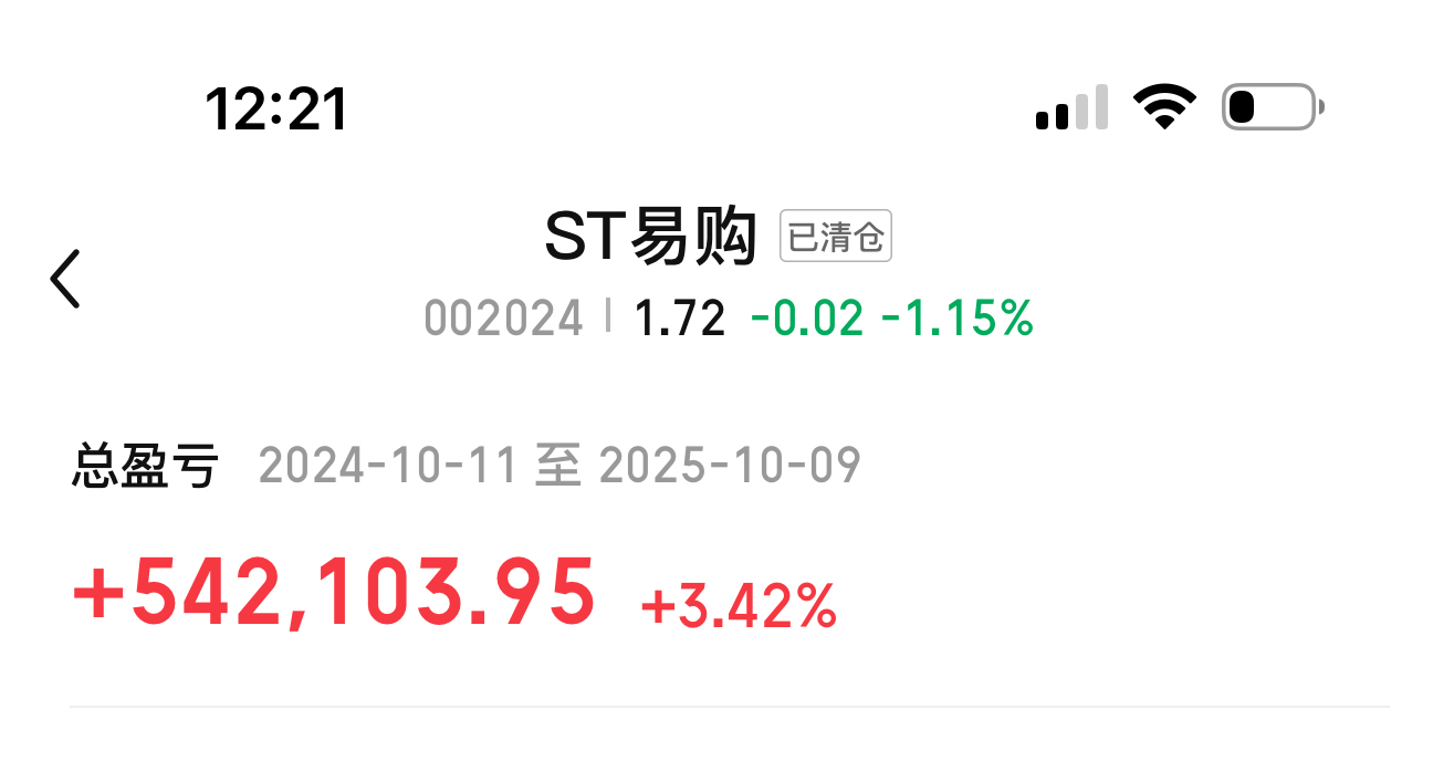 $ST易购(SZ002024)$ 这股持仓一个月可以赚两年利息,持仓一年却只能赚一年银行利息,真是白白浪费时间。