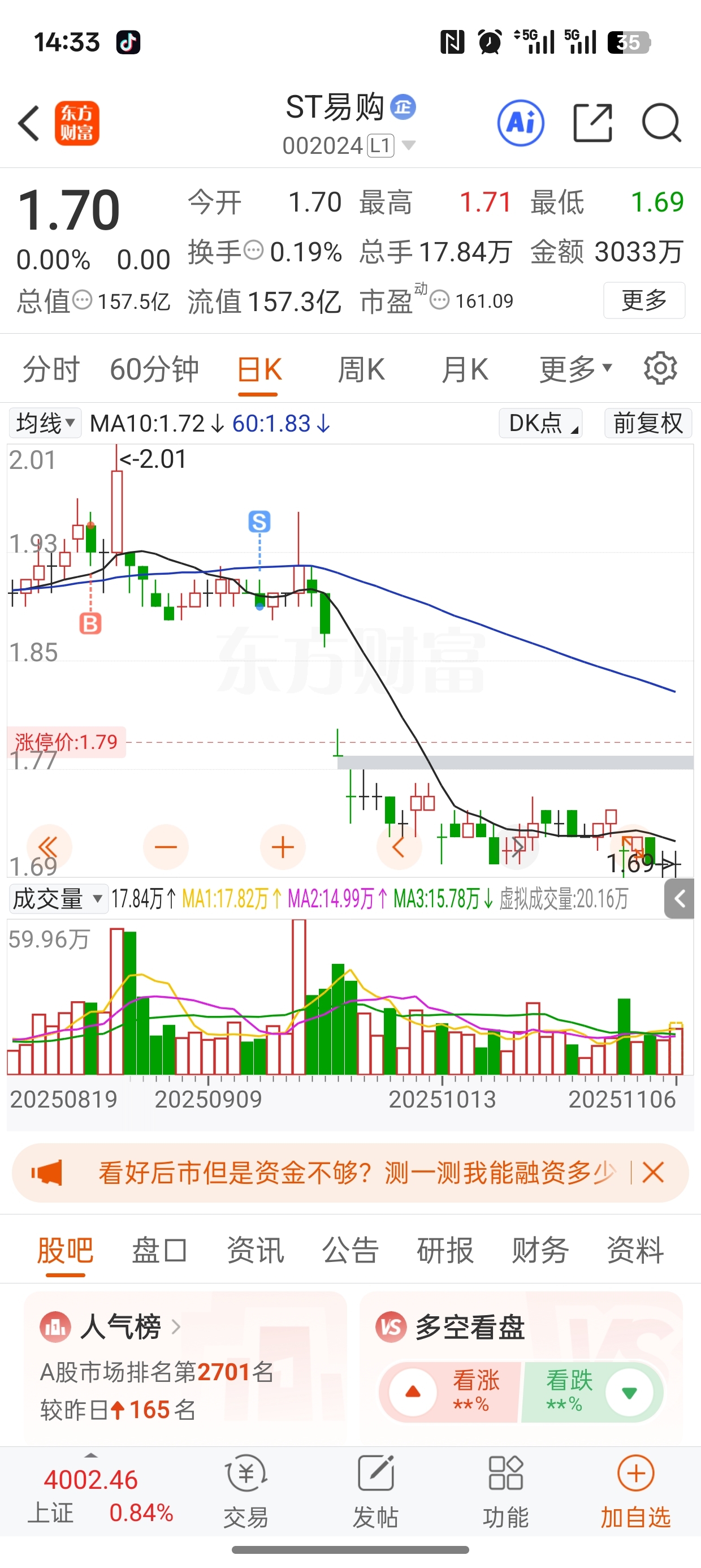 温馨提示: 1.根据《证券法》规定,禁止编造、传播虚假信息或者误导性信息,扰乱证券市场;2.用户在本社区发表的所有资料、言论等仅代表个人观点,与本网站立场无关,不对您构成任何投资建议。用户应基于自己的独立判断,自行决定证券投资并承担相应风险。《东方财富社区管理规定》