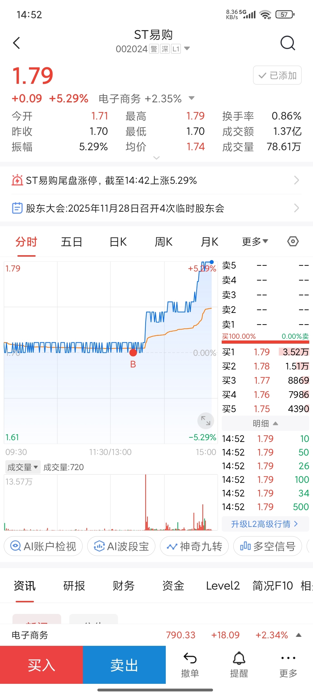 $ST易购(SZ002024)$ 挂上单就去睡觉了,刚睡醒,这是走了什么运吗?